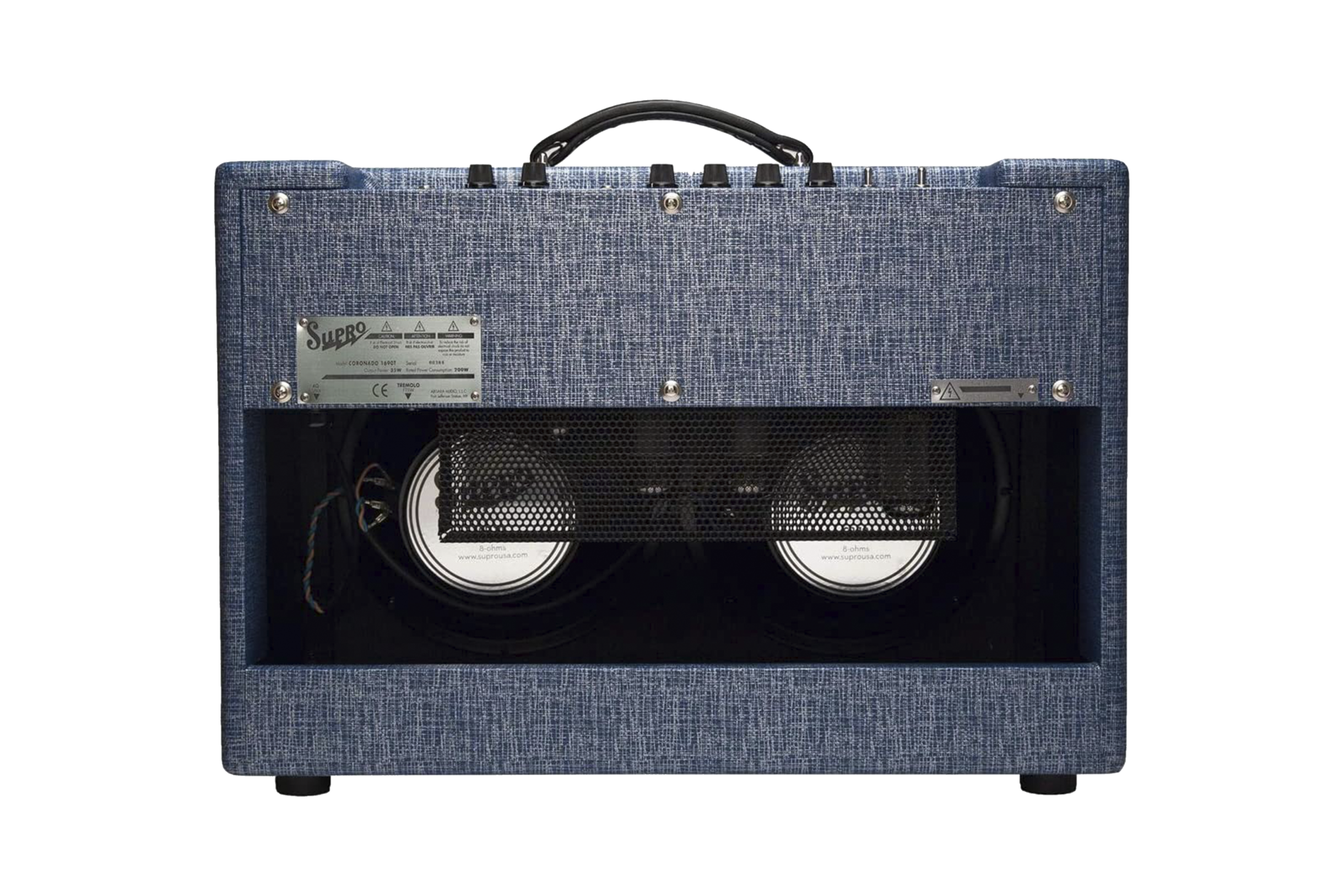 The 1690T Coronado is our top-of-the-line 1964 reissue Supro tube amplifier. True to the original, this luxurious 2 x 10, 35-Watt combo delivers remarkable dynamic range with a clear, full sound. The Coronado maintains clean headroom throughout a large chunk of the volume control’s range, making it an excellent platform for a myriad of musical styles, from fat round jazz tones to country twang, stinging blues and— when ramped up to full throttle—raging rock & roll.